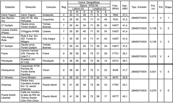 1. Autorízase a la concesionaria a instalar, operar y explotar seis (6) radioenlaces punto a punto, cuyas características se indican a continuación: