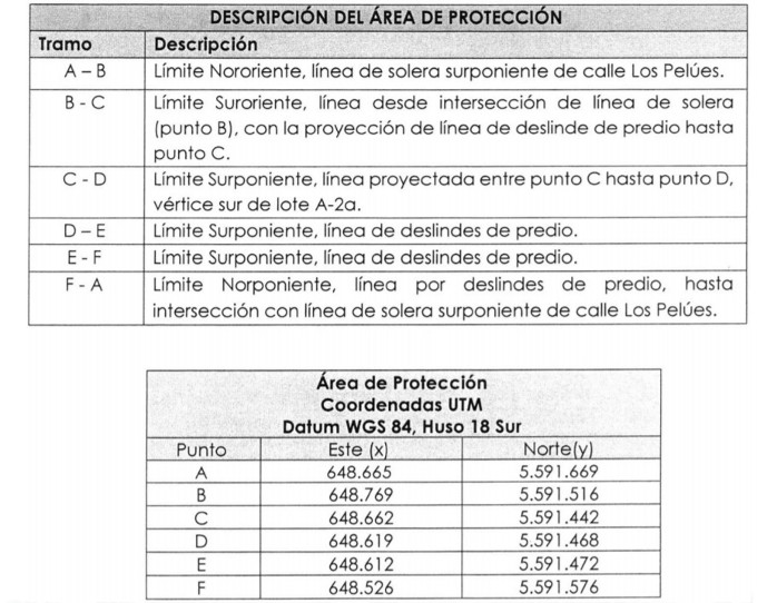 El área protegida tiene una superficie de 29.069 m2, como se grafica en el polígono con las letras A-B-C-D-E-F-A, del plano adjunto N° 009 - 2017, de 11/10/2017, visado por el Consejo de Monumentos Nacionales, que forma parte del presente decreto y cuyos límites son los siguientes: