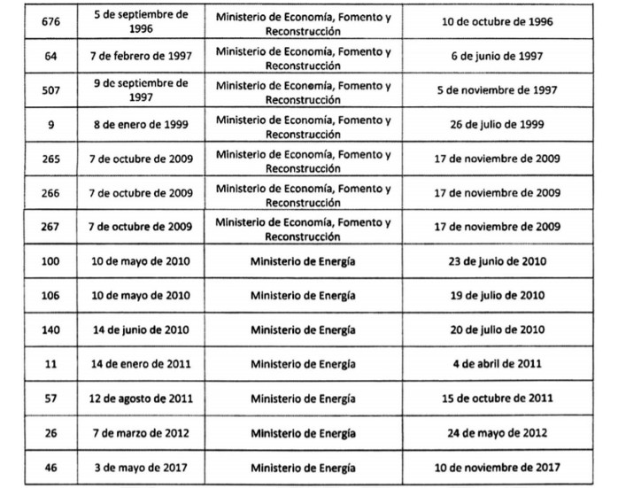Lo solicitado por la empresa Compañía General de Electricidad S.A., en adelante e indistintamente "CGE", mediante presentación de 24 de octubre de 2017, complementada mediante presentaciones de 31 de octubre de 2017 y 1 de diciembre de 2017; en el decreto ley Nº 2.224, de 1978, que crea el Ministerio de Energía y la Comisión Nacional de Energía; el decreto con fuerza de ley Nº 4/20.018, de 2006, del Ministerio de Economía, Fomento y Reconstrucción, que fija el texto refundido, coordinado y sistematizado del decreto con fuerza de ley N° 1, de Minería, de 1982, Ley General de Servicios Eléctricos, en materia de energía eléctrica, en adelante e indistintamente "LGSE"; el decreto supremo Nº 327, de 1997, del Ministerio de Minería, en adelante e indistintamente "Reglamento de la Ley General de Servicios Eléctricos"; el oficio ordinario N° 1.682, de 1 de diciembre de 2017, del Ministerio de Energía; el oficio ordinario Nº 1.683, de 1 de diciembre de 2017, del Ministerio de Energía; en el oficio CNE Of. Ord. Nº 136, de 8 de marzo de 2018, de la Comisión Nacional de Energía; en los oficios Ord. Nº 26724/ ACC 1818050/ Doc 1615787, de 28 de diciembre de 2017, Nº 04752/ ACC 1875525/ Doc 1660397, de 8 de marzo de 2018, y Nº 05738/ ACC 1887819/ Doc 1671326, de 26 de marzo de 2018, todos de la Superintendencia de Electricidad y Combustibles; en la resolución Nº 1.600, de la Contraloría General de la República, y;