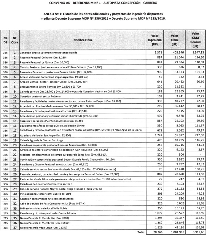 CONVENIO AD - REFERÉNDUM N° 1 - AUTOPISTA CONCEPCIÓN - CABRERO