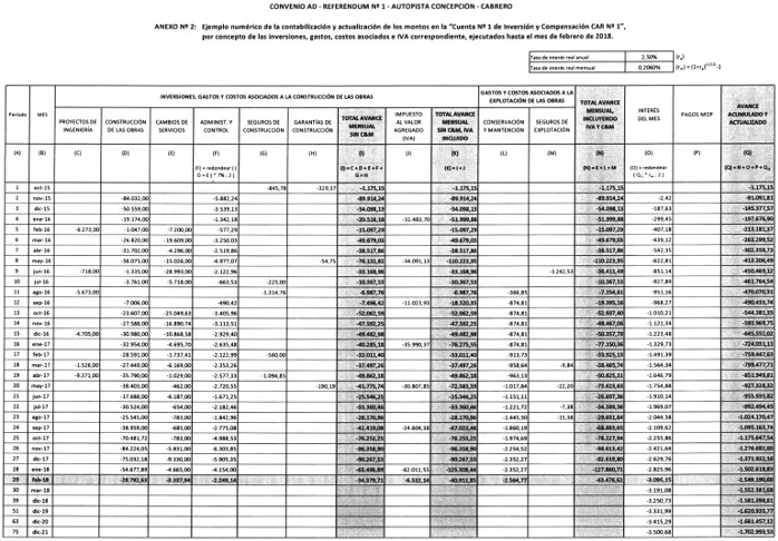 REF: Valores devengados a "Sociedad Concesionaria Valles del Bío Bío S.A." hasta el mes de febrero de 2018 (2 de 7), según lo establecido en el Convenio Ad - Referéndum N° 1 de la obra pública fiscal denominada "Concesión Autopista Concepción - Cabrero".