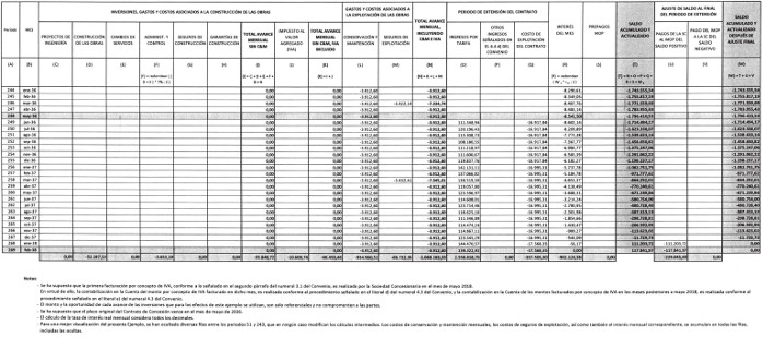 - Que las nuevas inversiones, gastos y costos adicionales a realizar por la Sociedad Concesionaria, derivados de las modificaciones a las características de las obras y servicios del contrato de concesión dispuestas mediante Decreto Supremo MOP N°336, de fecha 23 de diciembre de 2015, y aquellas dispuestas mediante Decreto Supremo MOP N°215, de fecha 25 de julio de 2016, los cuales se encuentran expresamente detallados en la cláusula segunda del Convenio Ad-Referéndum N° 1 del contrato de concesión, y que sean contabilizados en la "Cuenta N° 1 de Inversión y Compensación CAR N° 1", serán pagados por el MOP.