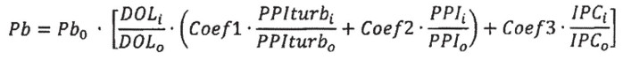 La fórmula de indexación aplicable a los precios de potencia correspondientes a los bloques de suministro Nº 1-A, Nº 1-B, Nº 1-C, Nº 2-A, Nº 2-B, Nº 2-C y Nº 2-D es la siguiente: