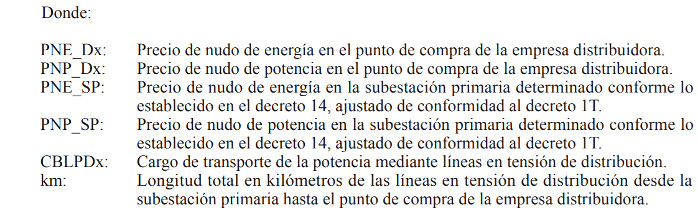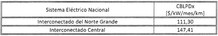 . El cargo de transporte de la potencia CBLPDx será el que a continuación se indica: