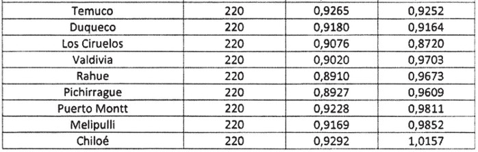 Del mismo modo, para determinar los precios de energía en los puntos de compra, para cada punto de oferta, el precio de energía que resulte de las licitaciones respectivas para el punto de oferta se deberá ponderar por el cociente entre el factor de modulación asociado al punto de compra respectivo y el factor de modulación asociado al punto de oferta, utilizando los factores de modulación del precio de la energía establecidos en el cuadro anterior.