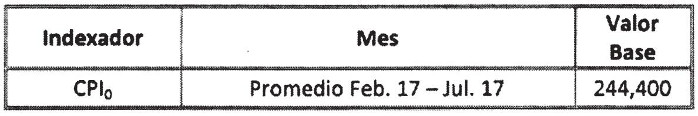 CPI: Consumer Price Index (USA), publicado por el Bureau of Labor Statistics of USA, cuyo valor se encuentra en el sitio web http://data.bls.gov/cgi-bin/srgate, clave "CUUR0000SA0", identificación "Consumer Price Index-all Urban Consumers (CPI)", o en su defecto, una nueva publicación que reemplace a la mencionada para efectos de la publicación de este índice. Se considerará el promedio de los valores mensuales del índice, de los últimos 6 meses contados regresivamente desde el tercer mes anterior al mes en el cual se evalúa la fórmula de indexación.