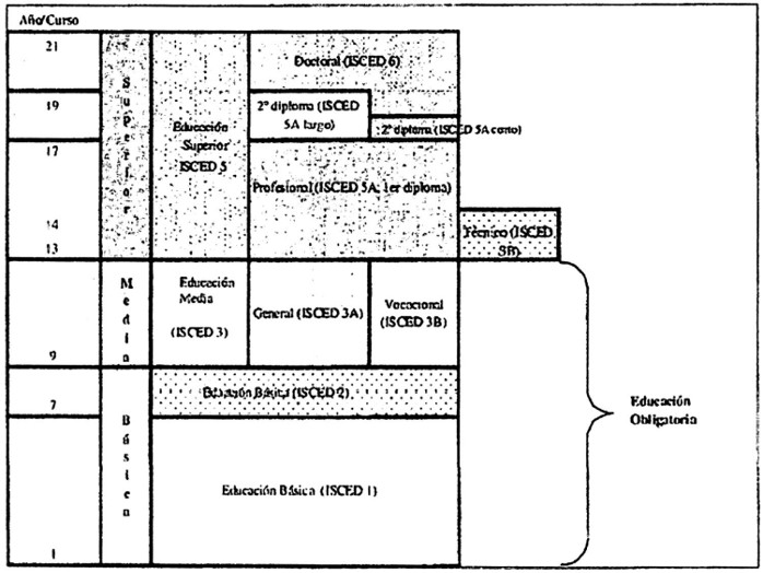 . La figura 1.1 muestra el sistema de educación en Chile. La educación obligatoria dura 12 años, generalmente comienza a los seis años de edad y hay ocho años de educación básica (primaria). Según ISCED (International Standard Classification of Education / Clasificación Estándar Internacional de la Educación) desarrollada por la UNESCO, los primeros seis años de básica corresponden a ISCED 1 y los dos años restantes a ISCED 2 (secundaria).
