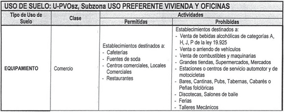 En esta subzona aplica el Cuadro 50: Uso de Suelo U-PVO, excepto en la Clase Comercio, donde se aplica lo siguiente: