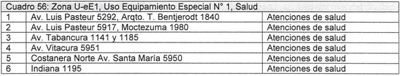 1.2.8.2 En el Cuadro 56: Zona U-eE1, Uso Equipamiento Especial Nº 1, Salud, reemplazar el Cuadro existente por el siguiente: