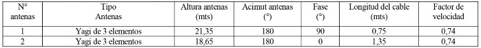 - Tipo de antena : Yagi de 3 elementos, con tilt