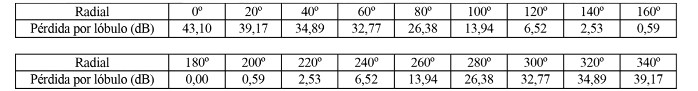 - Diagrama de radiación horizontal, de acuerdo a la siguiente tabla: