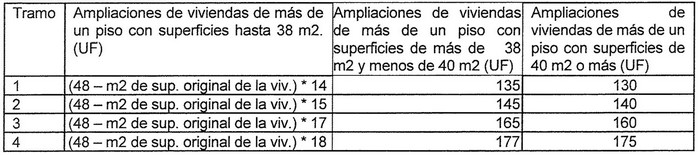 . Para ampliar viviendas de más de un piso con una superficie inferior a 40 m2 se contemplan los siguientes montos de subsidio:
