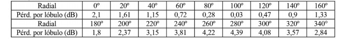 - Diagrama de radiación horizontal de acuerdo a la siguiente tabla: