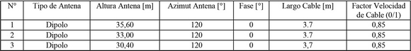 - Arreglo de Antenas de acuerdo a la siguiente tabla: