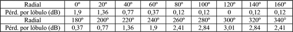 - Diagrama de radiación horizontal de acuerdo a la siguiente tabla: