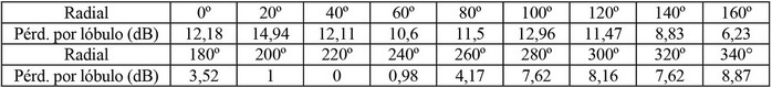 - Diagrama de radiación horizontal de acuerdo a la siguiente tabla: