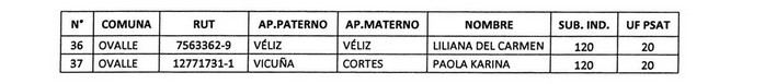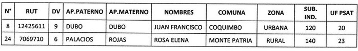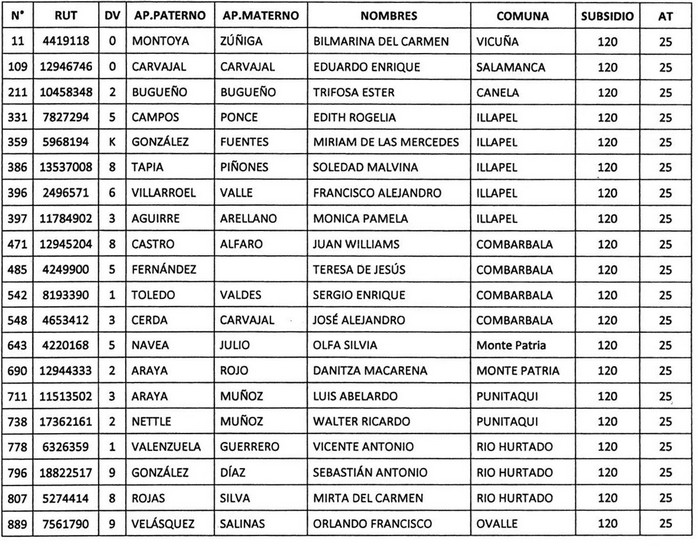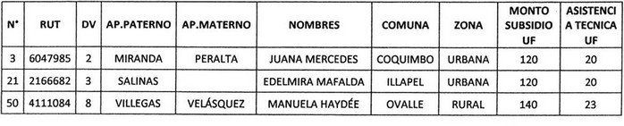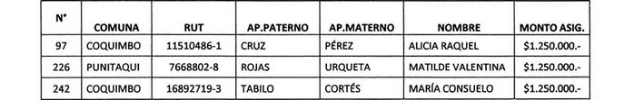 3.1 Eliminar de la nómina de beneficiados aprobados por esta resolución, las filas que se detallan a continuación: