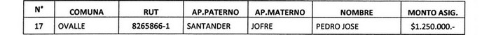 17.1 Eliminar de la nómina de beneficiados denominada "Nómina seleccionados 2° quincena agosto BM+SC Daño moderado", la fila que se detalla a continuación: