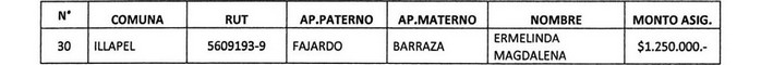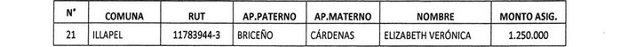 8.1 Eliminar de la nómina de beneficiados aprobada por esta resolución, la fila que se detalla a continuación:
