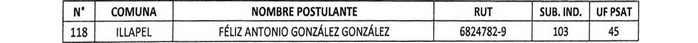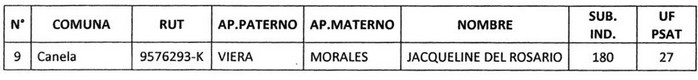 . 17.2 Eliminar de la nómina de beneficiados denominada "Nómina seleccionados 2° quincena agosto BM+SC Viviendas con características Patrimoniales", la fila que se detalla a continuación: