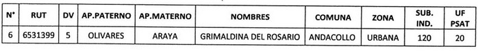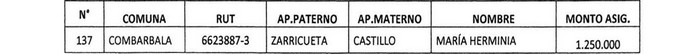 6.1 Eliminar de la nómina de beneficiados aprobada por esta resolución, la fila que se detalla a continuación: