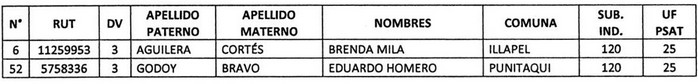10.1 Eliminar de la nómina de beneficiados aprobados por esta resolución, las filas que se detallan a continuación: