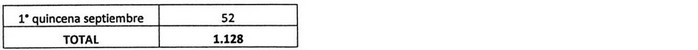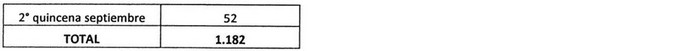 . 11.2 Reemplázanse en la tabla inserta en el Resuelvo 4 las filas denominadas "2° quincena septiembre" y "TOTAL", por las que se señalan a continuación: