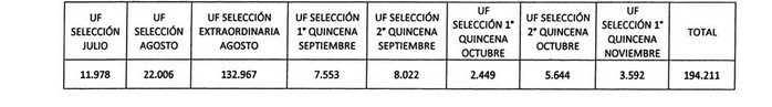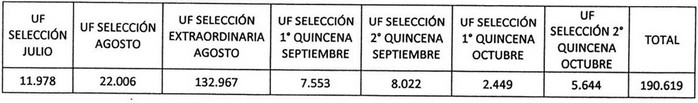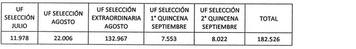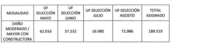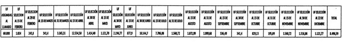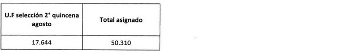 . 17.4 Reemplazar en la tabla inserta en el resuelvo 3 las columnas denominadas "UF selección 2° quincena agosto" y "Total asignado", por las que se señalan a continuación: