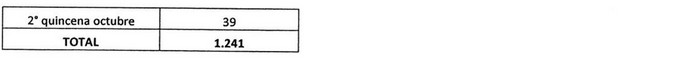 . 12.2 Reemplázanse en la tabla inserta en el Resuelvo 2 las filas denominadas "2° quincena octubre" y "TOTAL", por las que se señalan a continuación: