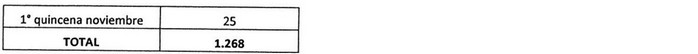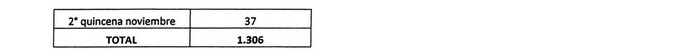 . 14.2 Reemplázanse en la tabla inserta en el Resuelvo 1, las filas denominadas "2° quincena noviembre" y "TOTAL", por las que se señalan a continuación: