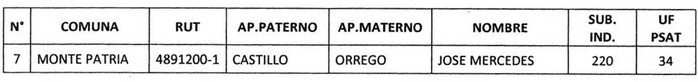 7.1 Eliminar de la nómina de beneficiados aprobada por esta resolución, la fila que se detalla a continuación: