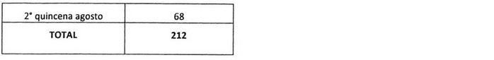 . 17.3 Reemplazar las filas denominadas "2° quincena agosto" y "TOTAL", por las que se señalan a continuación: