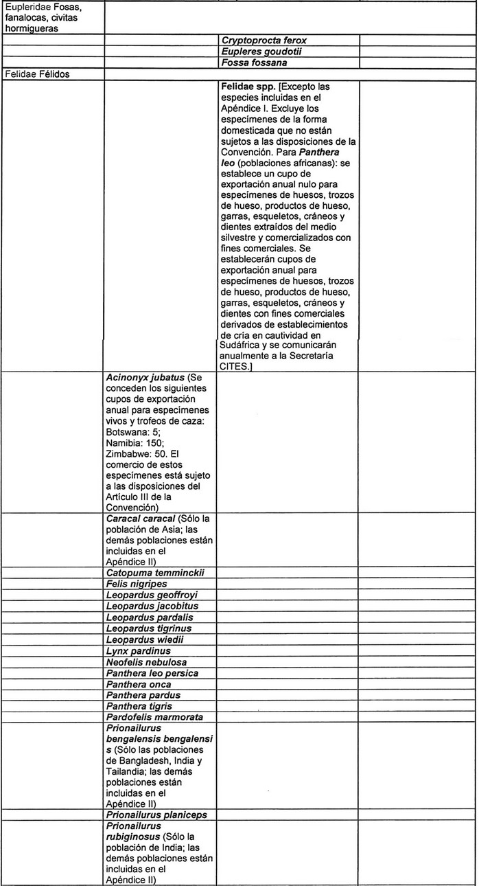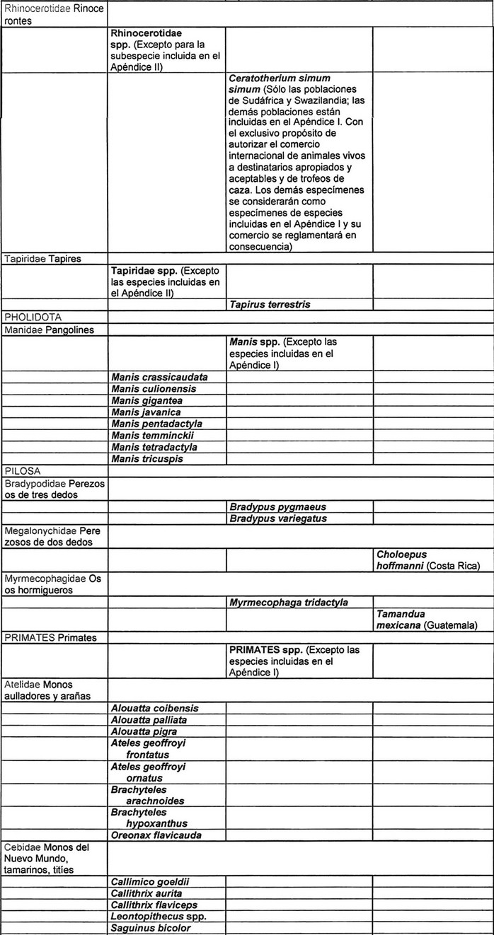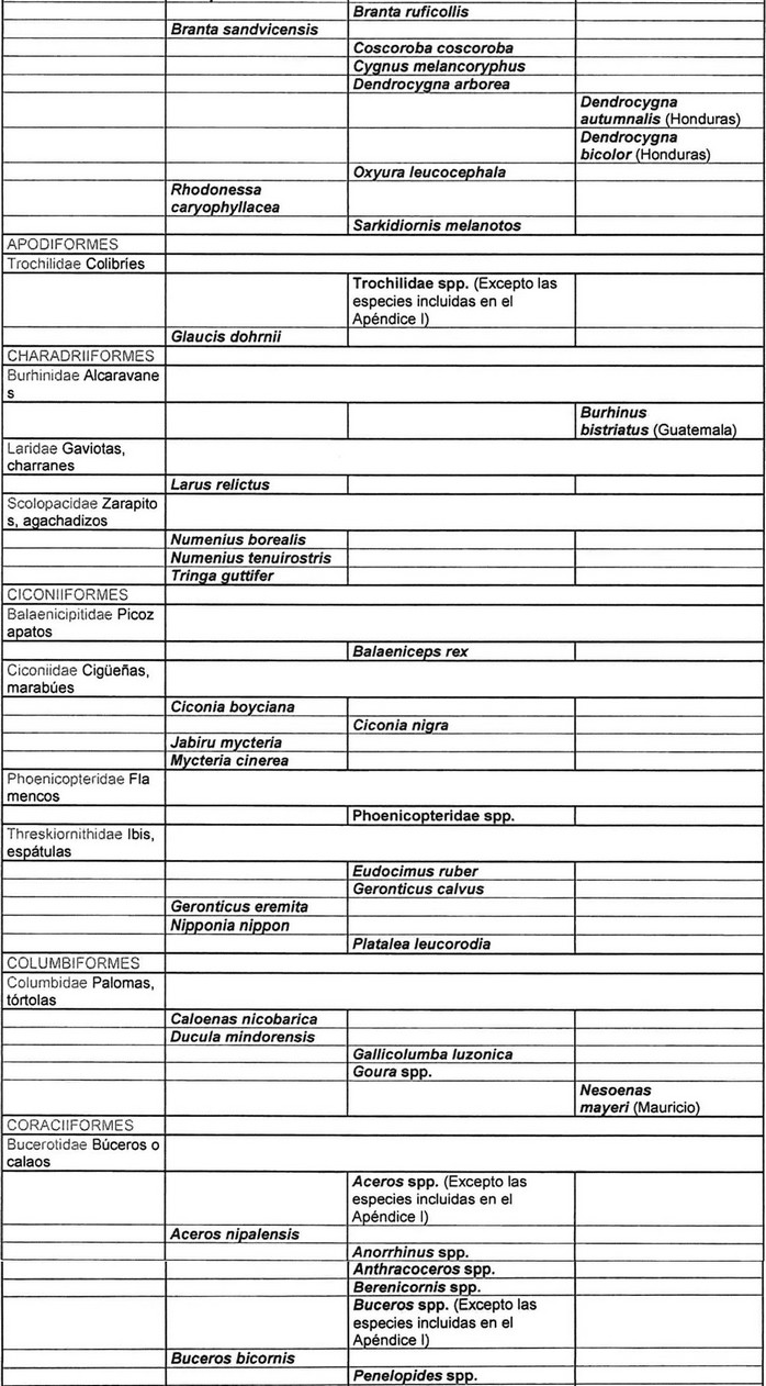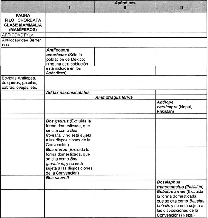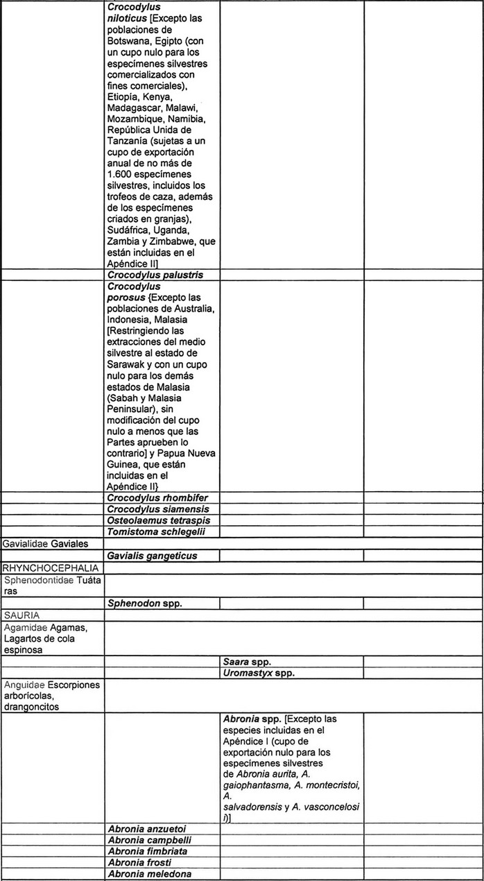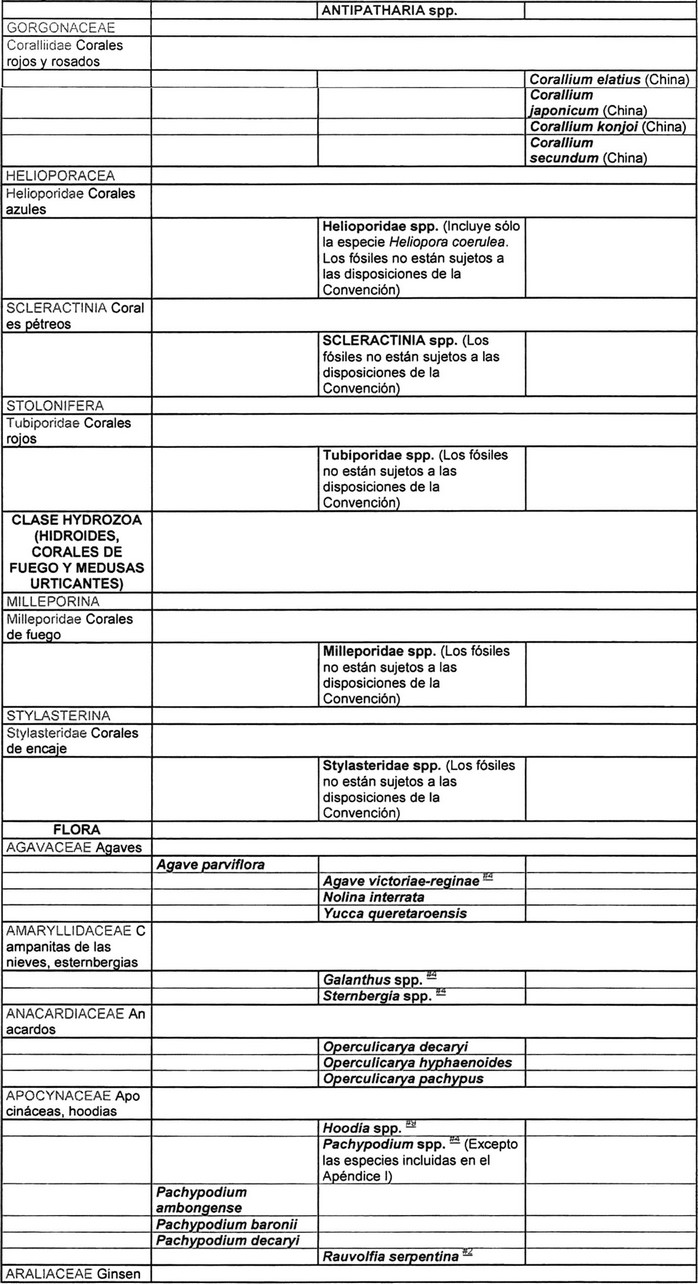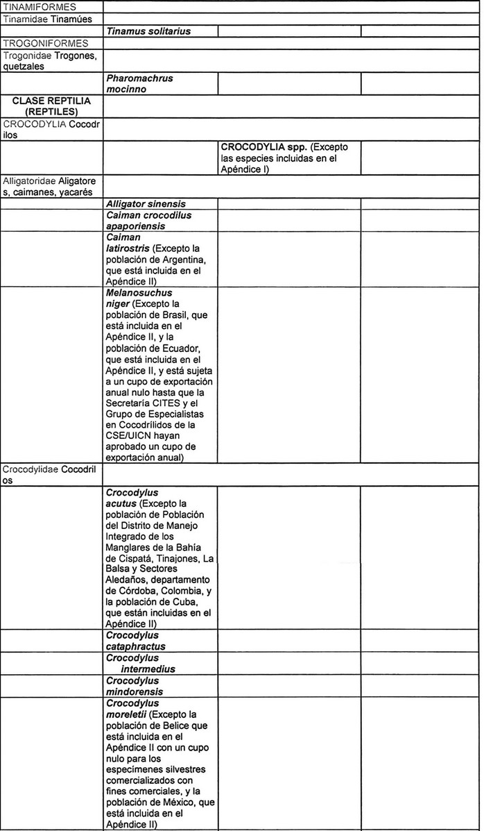 ESTABLECE LA ACTUALIZACIÓN DE LOS APÉNDICES DE LA CONVENCIÓN SOBRE EL COMERCIO INTERNACIONAL DE ESPECIES AMENAZADAS DE FLORA Y FAUNA SILVESTRE