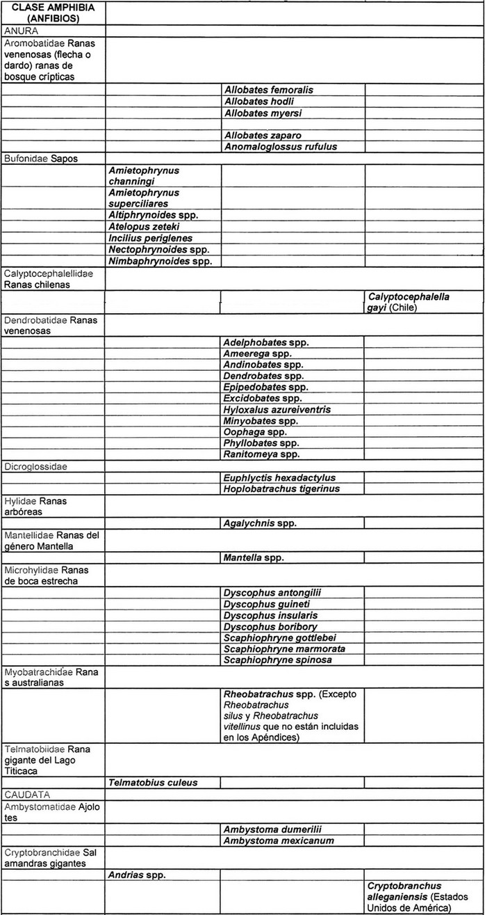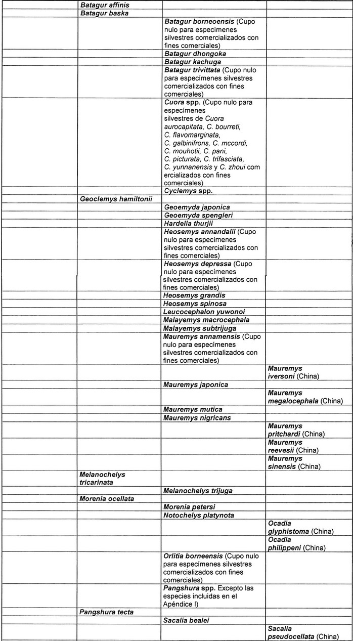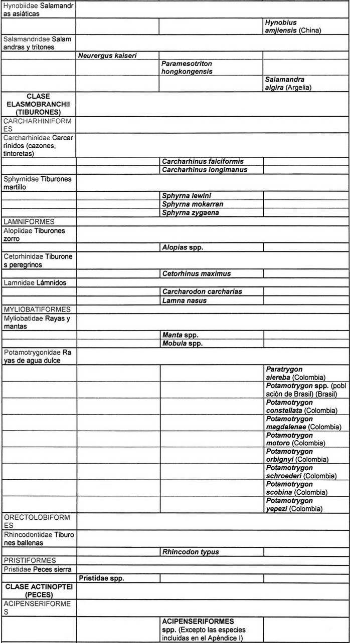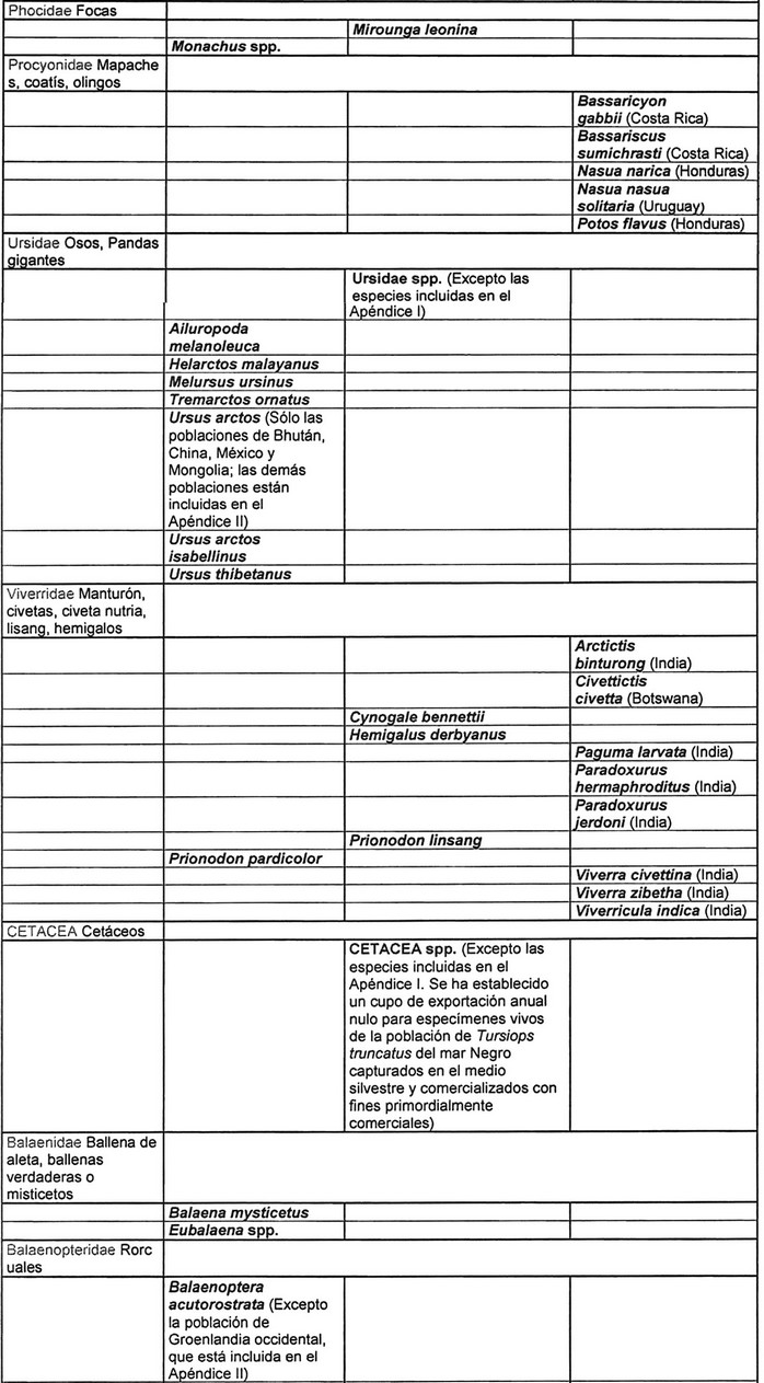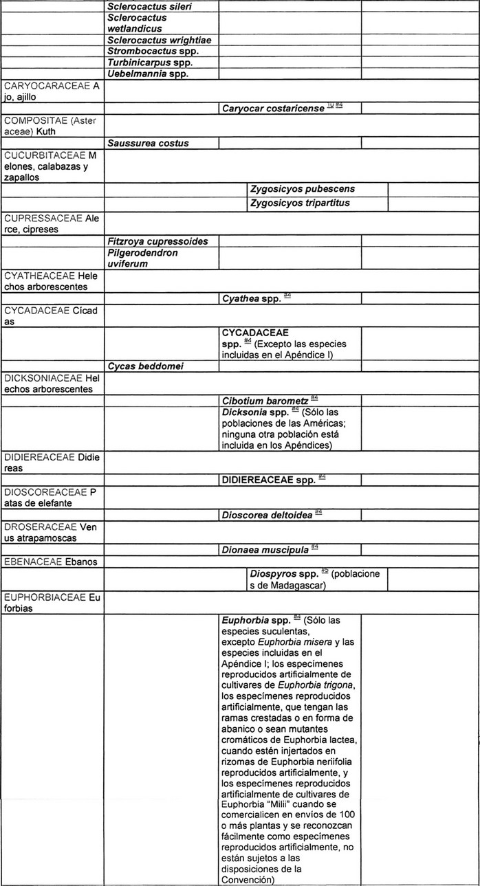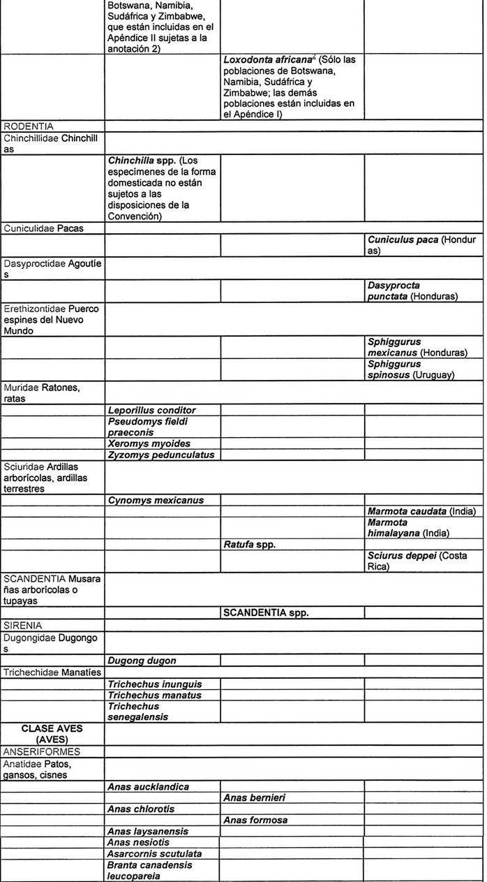 ESTABLECE LA ACTUALIZACIÓN DE LOS APÉNDICES DE LA CONVENCIÓN SOBRE EL COMERCIO INTERNACIONAL DE ESPECIES AMENAZADAS DE FLORA Y FAUNA SILVESTRE