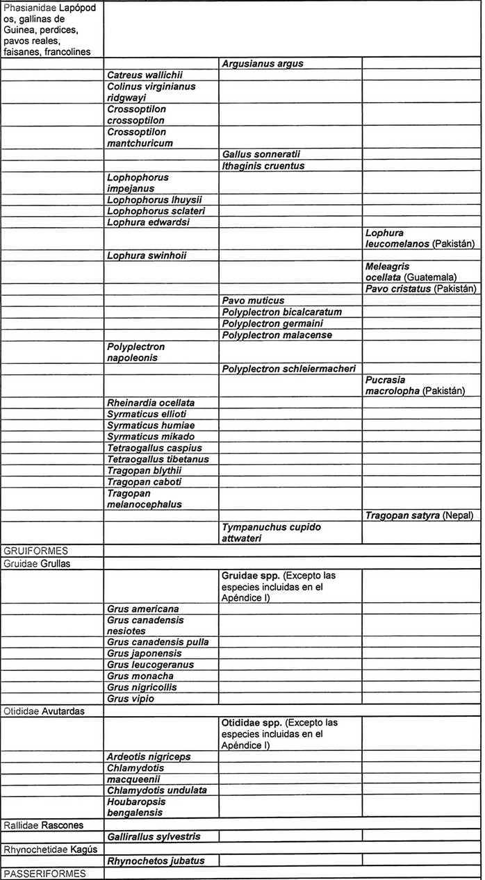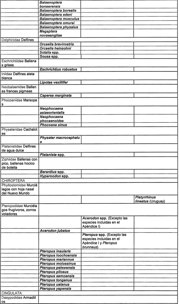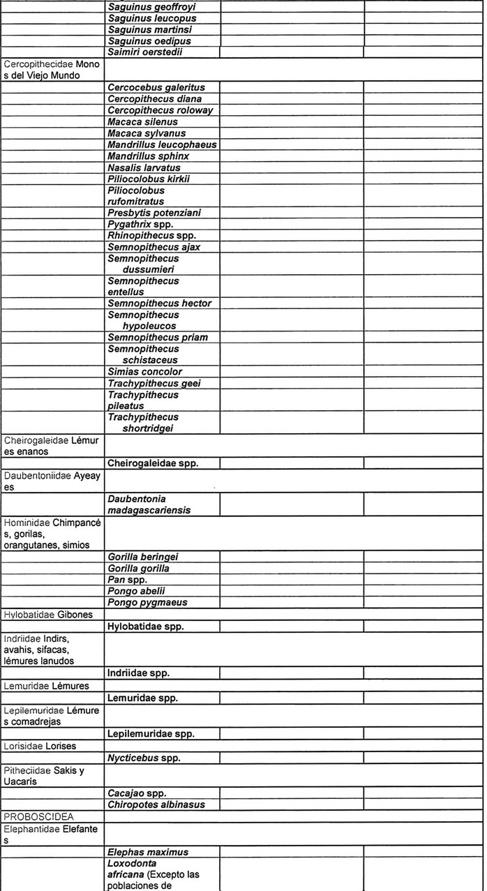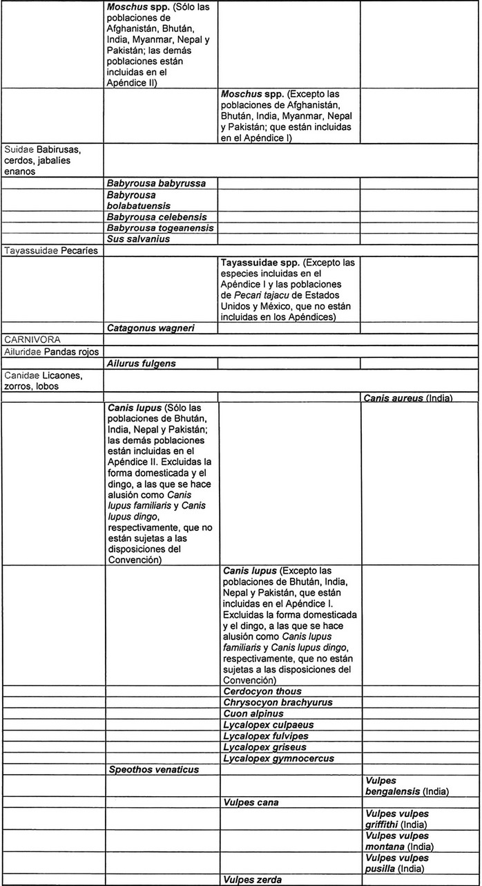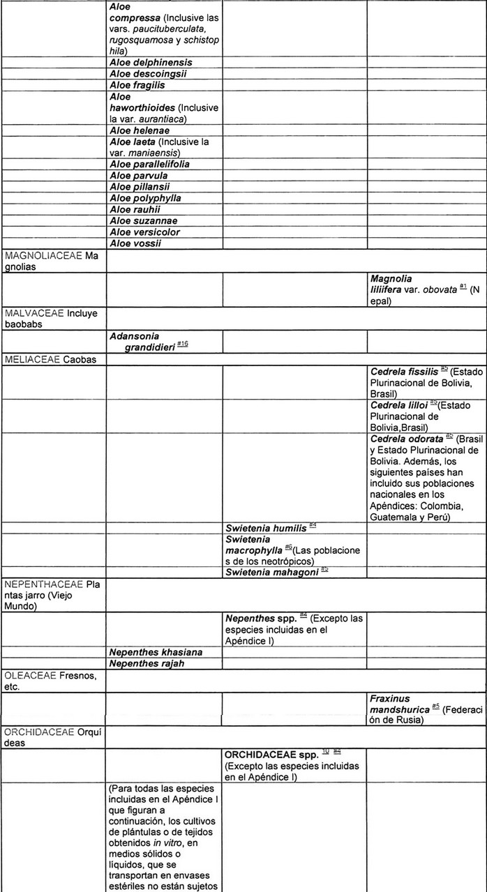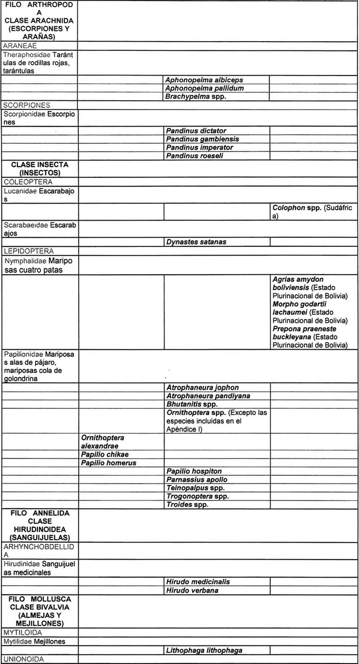 ESTABLECE LA ACTUALIZACIÓN DE LOS APÉNDICES DE LA CONVENCIÓN SOBRE EL COMERCIO INTERNACIONAL DE ESPECIES AMENAZADAS DE FLORA Y FAUNA SILVESTRE