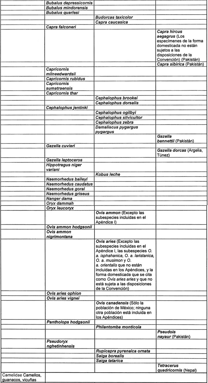 A propuesta de la Secretaría, el Comité Permanente puede decidir cesar parcial o completamente este comercio en caso de incumplimiento por los países de exportación o importación, o en el caso de que se demuestre que el comercio tiene un efecto perjudicial sobre otras poblaciones de elefantes. Todos los demás especímenes se considerarán especímenes de especies incluidas en el Apéndice I y su comercio será reglamentado en consecuencia. 9 Los especímenes reproducidos artificialmente de los siguientes híbridos y/o cultivares no están sujetos a las disposiciones de la Convención:
