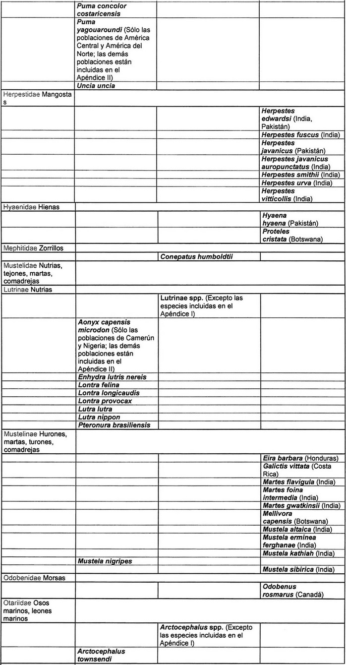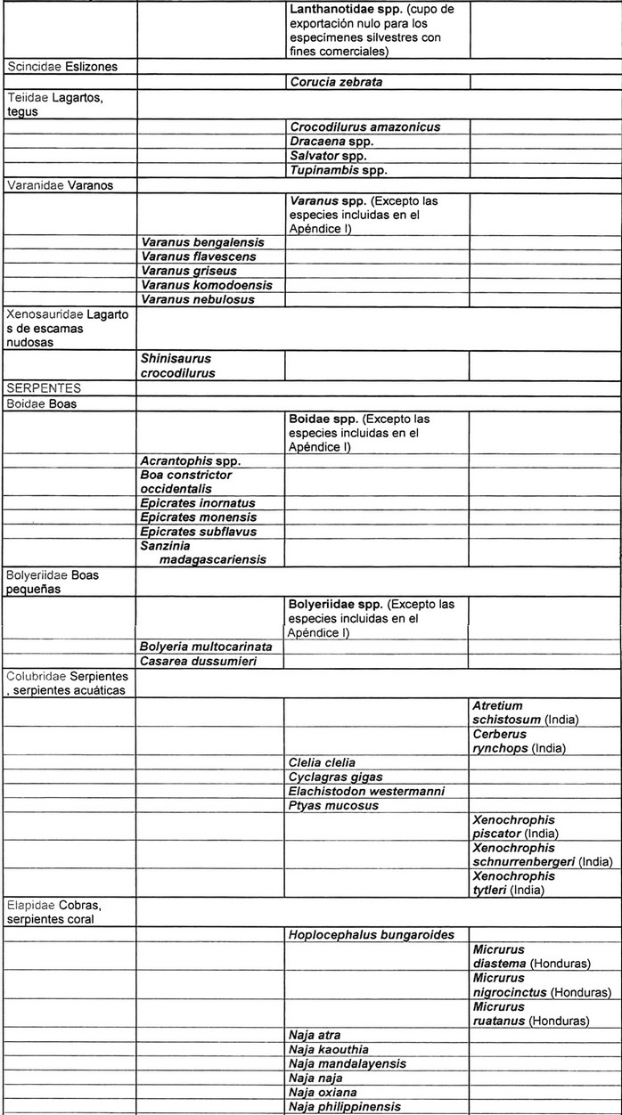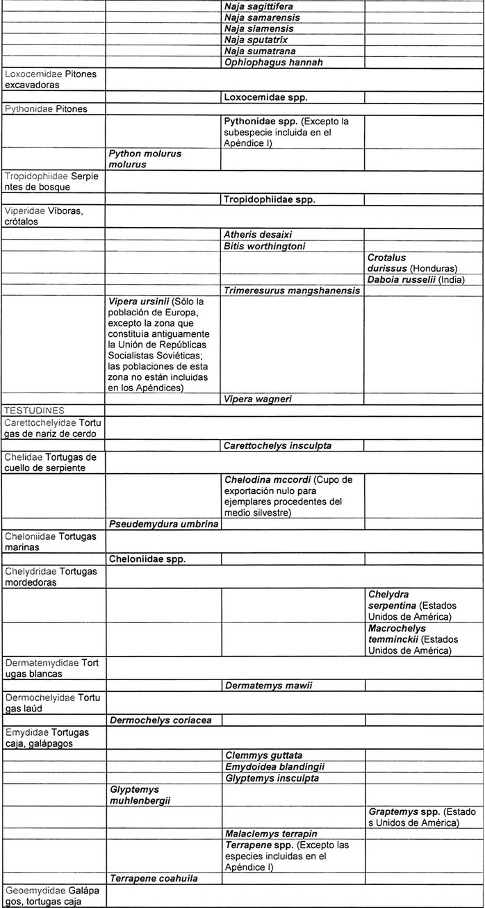 8. Que, la misma norma dispone que en el Apéndice I se incluyen todas las especies en peligro de extinción que son o pueden ser afectadas por el comercio internacional. En el Apéndice II se incluyen especies que, si bien en la actualidad no se encuentran necesariamente en peligro de extinción, podrían llegar a esa situación a menos que el comercio de especímenes de dichas especies esté sujeto a una reglamentación estricta a fin de evitar una utilización incompatible con su supervivencia, y aquellas otras especies no afectadas por el comercio que también deberán sujetarse a reglamentación, con el fin de permitir un eficaz control del comercio de las especies referidas en el presente inciso. En el Apéndice III se incluyen todas las especies que cualquiera de los Estados Parte de la Convención manifiestan que se hallan sometidas a reglamentación dentro de su jurisdicción con el objeto de prevenir o restringir su explotación, y que necesitan la cooperación de otros Estados Parte en el control de su comercio.