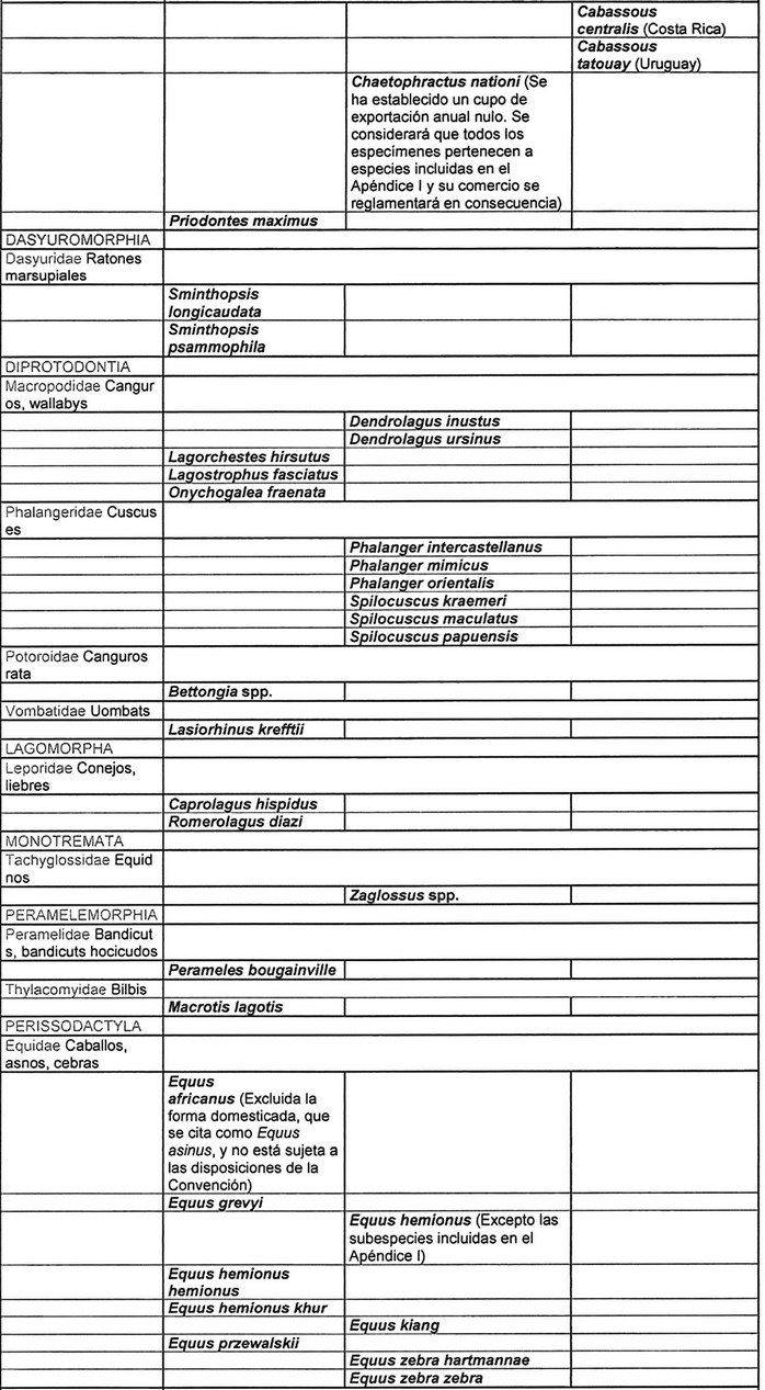 e) Todos los demás especímenes deben considerarse como especímenes de especies incluidas en el Apéndice I y su comercio debe reglamentarse en consecuencia.