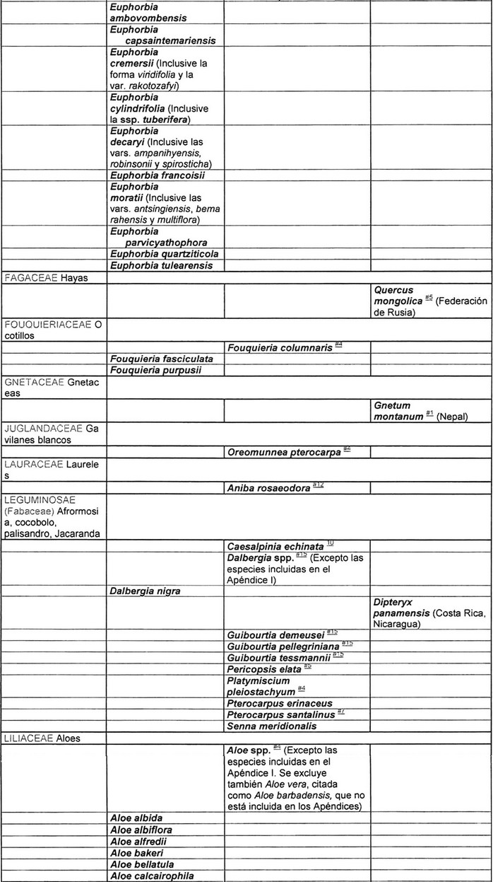 c) Partes y derivados de Dalbergia cochinchinensis, mismos que están cubiertos por la Anotación #4;