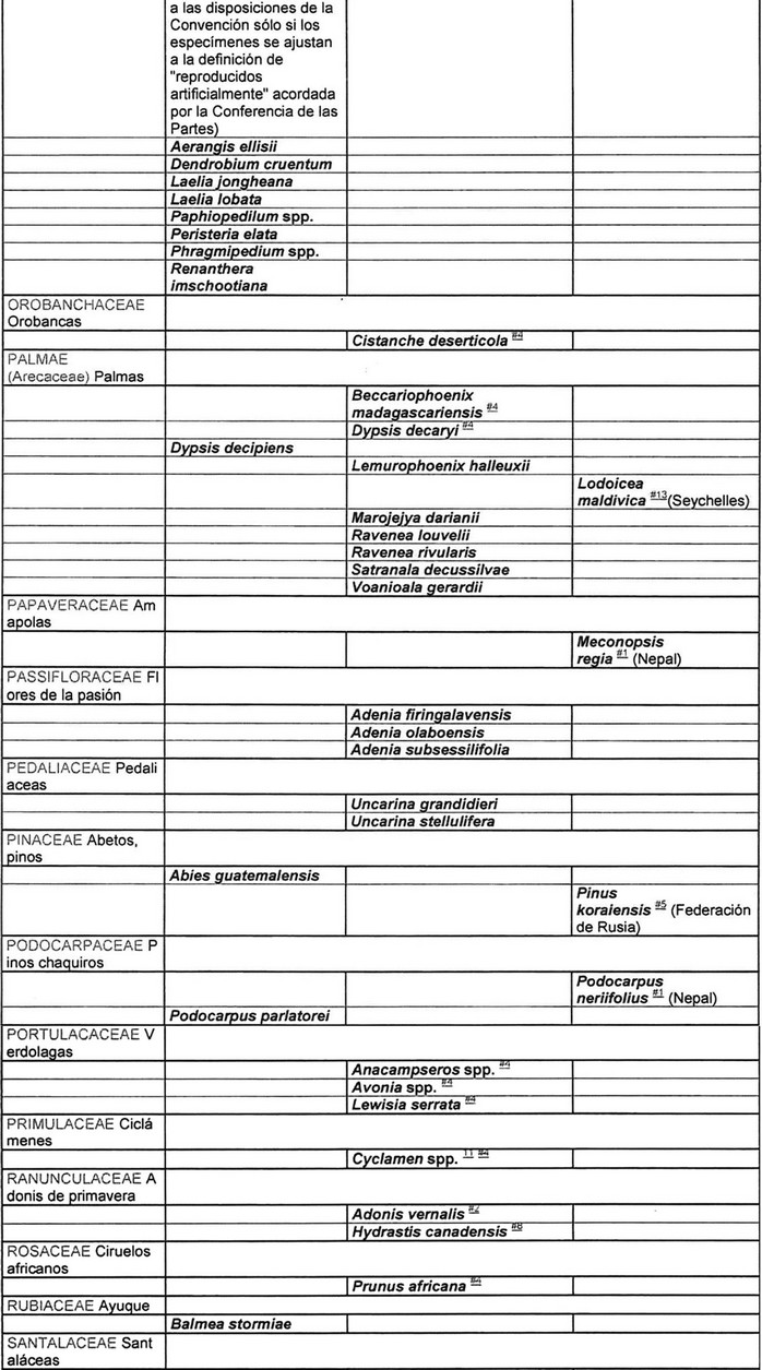 a) las semillas (inclusive las vainas de Orchidaceae), las esporas y el polen (inclusive las polinias). La exención no se aplica a las semillas de Cactaceae spp. exportadas de México y las semillas de Beccariophoenix madagascariensis y Dypsis decaryi exportadas de Madagascar;