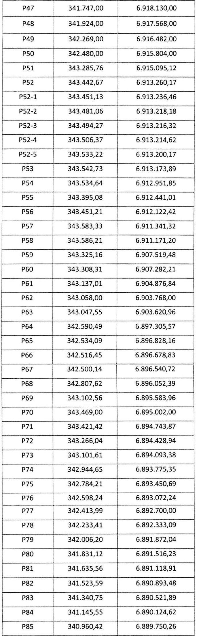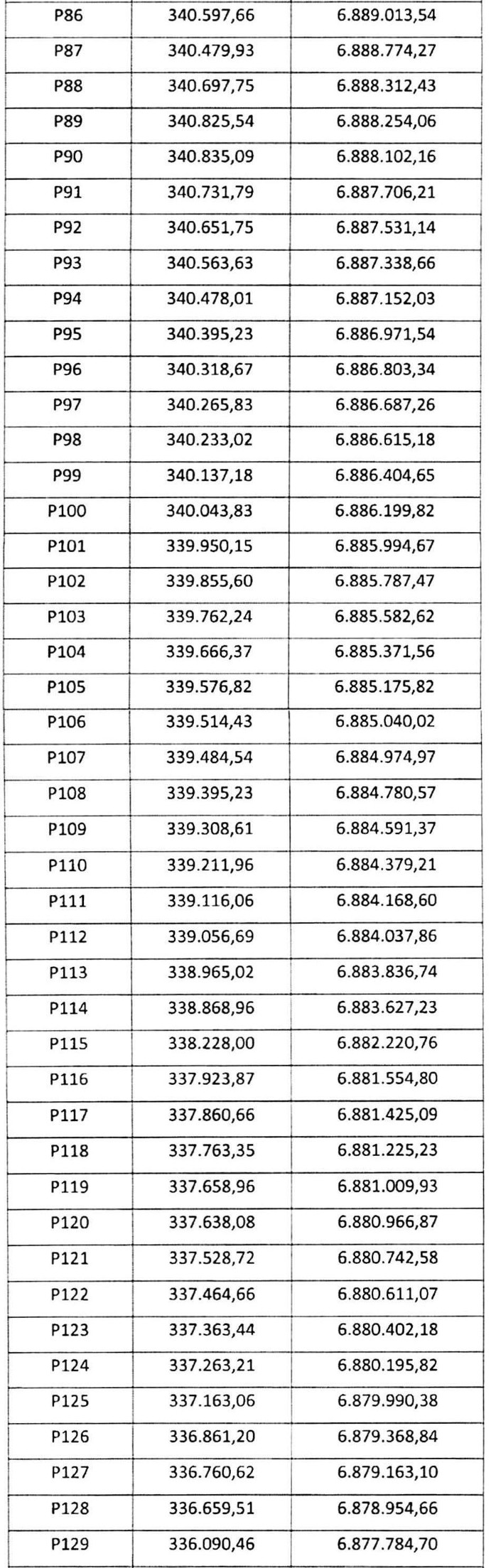 . Tabla 9. Coordenadas de cruces con caminos.