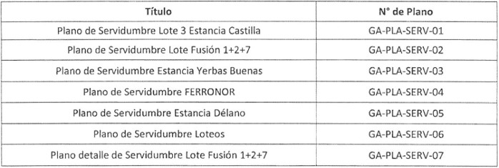 . A continuación, se incluye en la Tabla 7 la individualización de los planos que contemplan las propiedades que se afectarán por servidumbres.