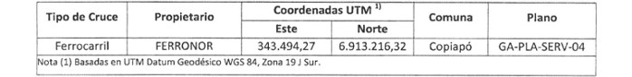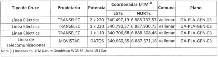 . Sexto. Las obras e instalaciones existentes que se verán afectadas por la construcción del gasoducto, como líneas eléctricas y de ferrocarriles, se detallan a continuación en las Tablas Nos 11 y 12. El detalle típico del cruce de ferrocarril, se muestra en el Plano Nº GA-PLC-04 "Plano Cruce Vía Férrea", en Revisión B.