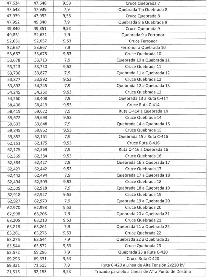 . El trazado completo del gasoducto se indica en el Plano General Nº GA-PLA-GEN-01. El trazado terrestre del gasoducto corresponde a una zona desértica de Clase 1, de acuerdo a la ASME B31.8/2007.