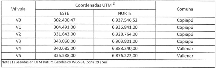 . La válvula V0 se ubica en la estación de recepción, mientras las válvulas V1 a V5 estarán a lo largo del trazado terrestre, las que tendrán rejas perimetrales definitivas de protección de dimensiones de 8 x 12 metros, siendo las coordenadas indicadas los centros geométricos de estos rectángulos.