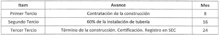 Décimo. La fecha de inicio de las obras corresponderá a la fecha de la total tramitación del presente acto administrativo, de los permisos ambientales y sectoriales y de la contratación o imposición de las servidumbres correspondientes. El cronograma de avance físico de las obras será el que se indica a continuación en la Tabla 16.