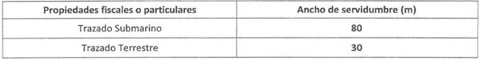 Tabla 17. Ancho de franja de Servidumbre.