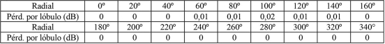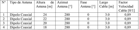 Arreglo de Antenas de acuerdo a la siguiente tabla: