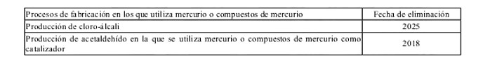 1. A los efectos del presente artículo y del anexo B, los procesos de fabricación en los que se utiliza mercurio o compuestos de mercurio no comprenderán los procesos en los que se utilizan productos con mercurio añadido ni los procesos de fabricación de productos con mercurio añadido ni los procesos en que se traten desechos que contengan mercurio.