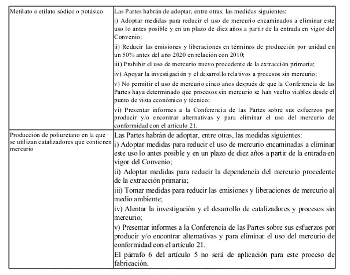 2. Ninguna Parte permitirá, tomando para ello las medidas apropiadas, el uso de mercurio ni de compuestos de mercurio en los procesos de fabricación incluidos en la parte I del anexo B tras la fecha de eliminación especificada en dicho anexo para cada proceso, salvo cuando la Parte se haya inscrito para una exención conforme al artículo 6.